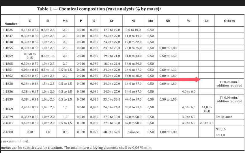 1.4852(GX40NiCrSiNb35-26)化学成分如下图: